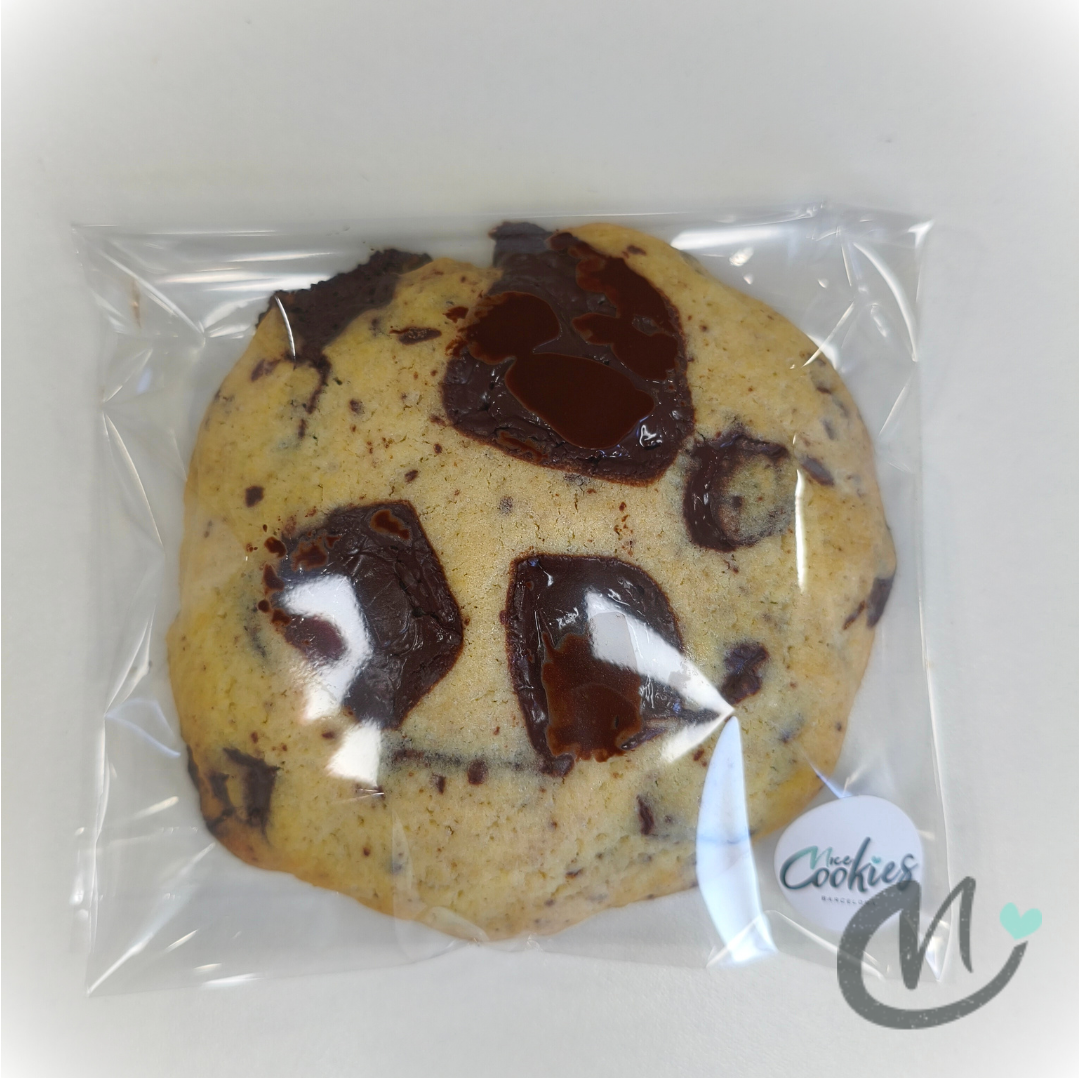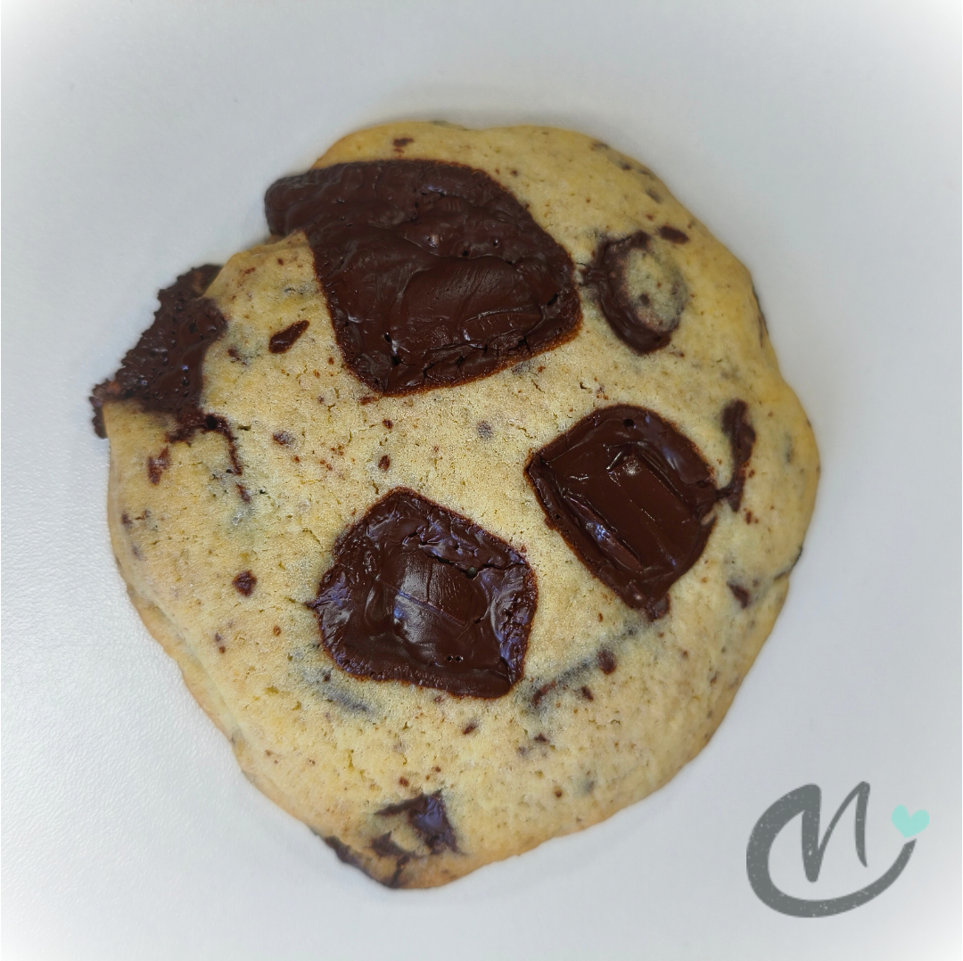 Nuestra masa suave y ligeramente dulce se combina con trozos de chocolate negro que se notan en cada mordisco.