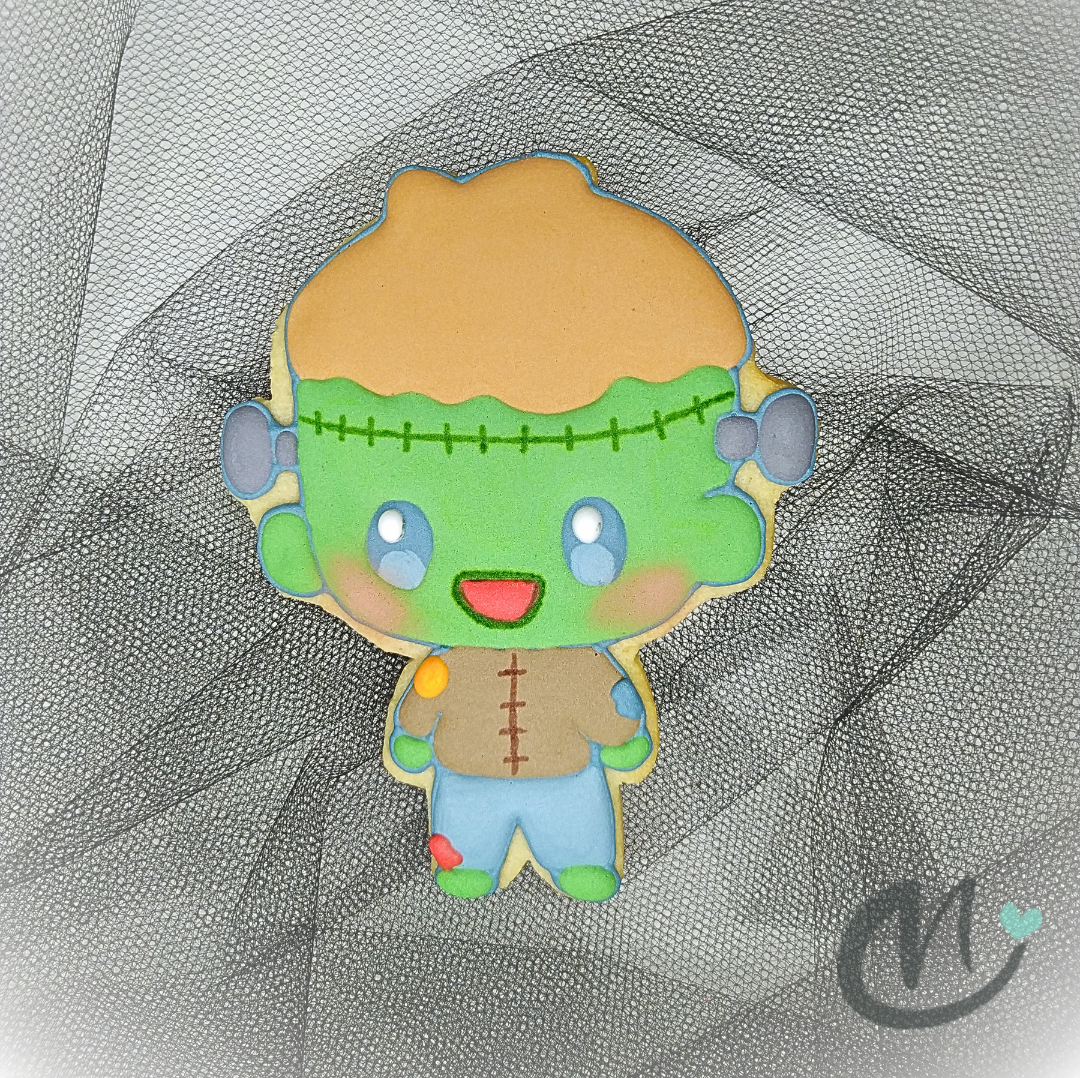 Galleta de mantequilla, artesana, elaborada una a una y decorada con glasa real, con forma de Zombie. La galleta es ideal para endulzar o regalar en una fiesta de Halloween. 🧟