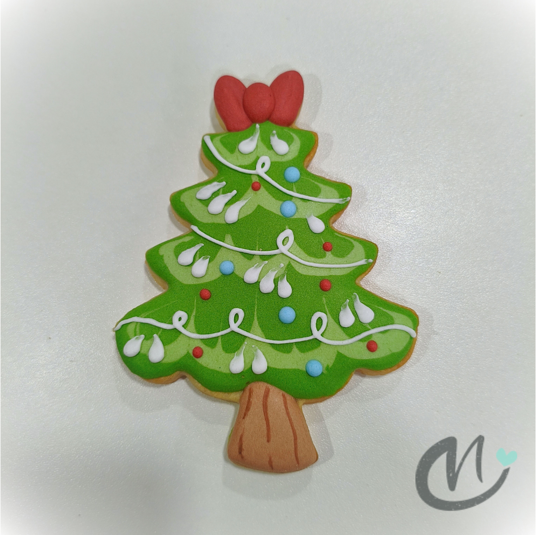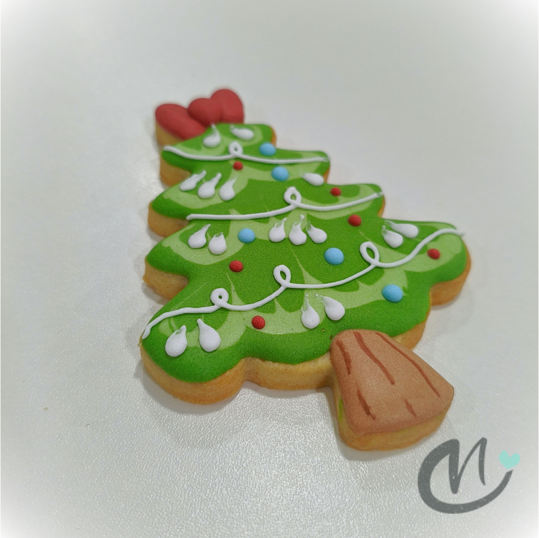 Galleta de mantequilla, artesana, elaborada una a una y decorada con glasa real, con forma de Árbol de Navidad. La galleta es ideal para endulzar o regalar en una fiesta de Navidad. 🎄 ❄️