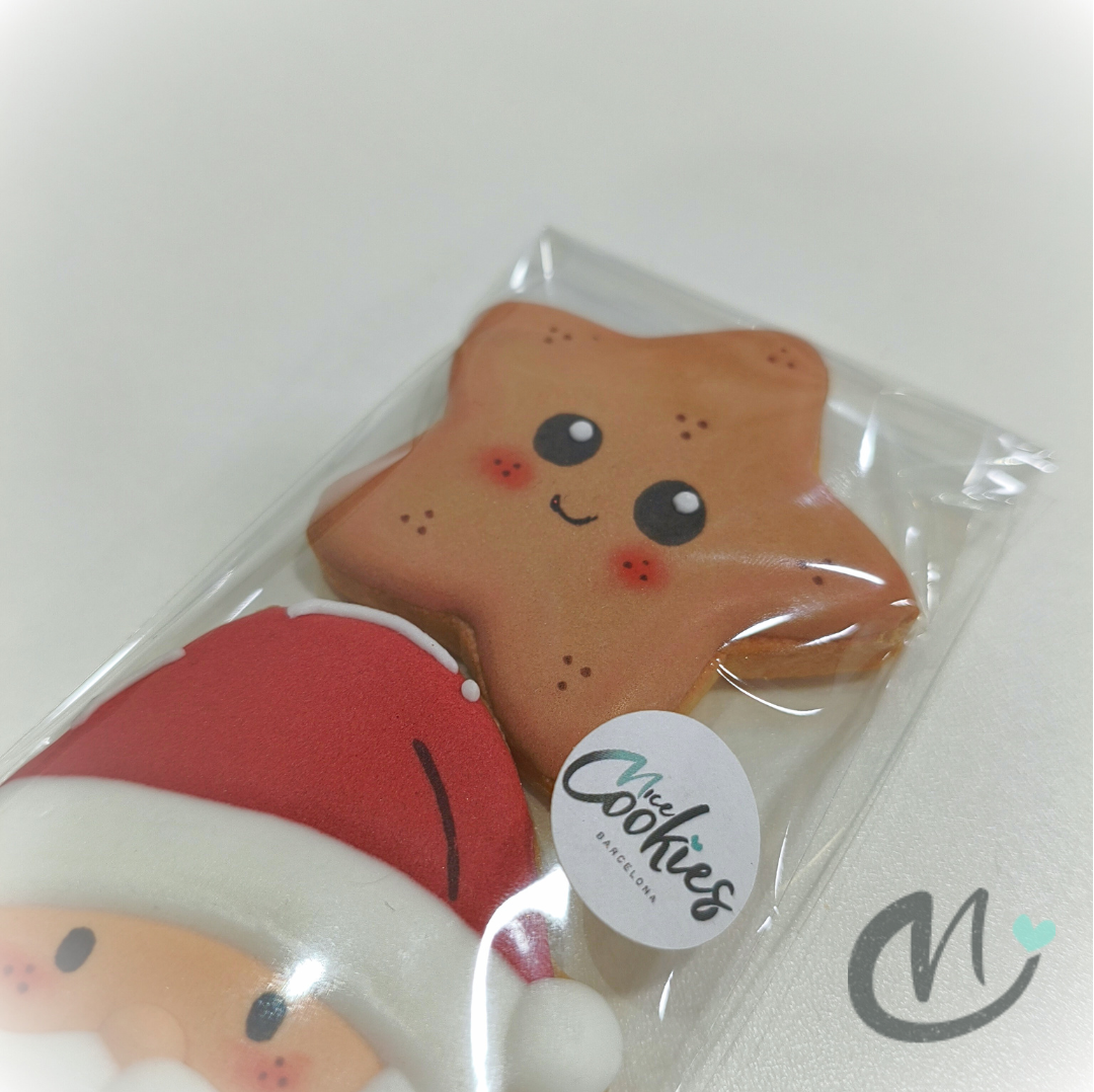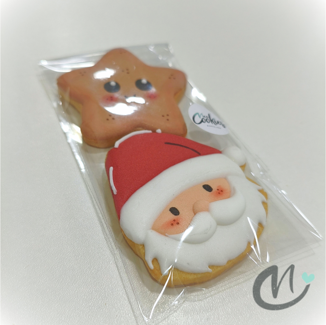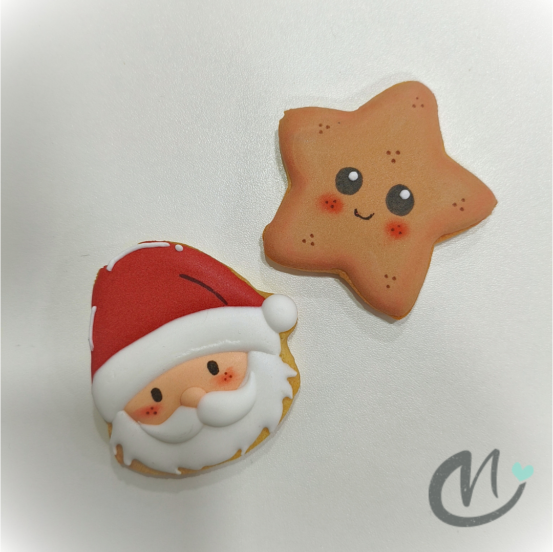 Galleta de mantequilla, artesana, elaborada una a una y decorada con glasa real, con forma de Cara de Papa Noel y Estrella. La galleta es ideal para endulzar o regalar en una fiesta de Navidad. 🎄 ❄️