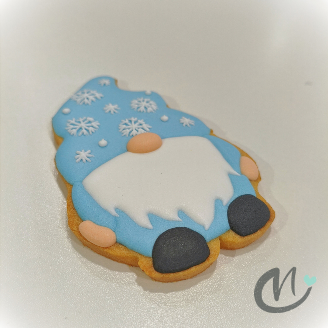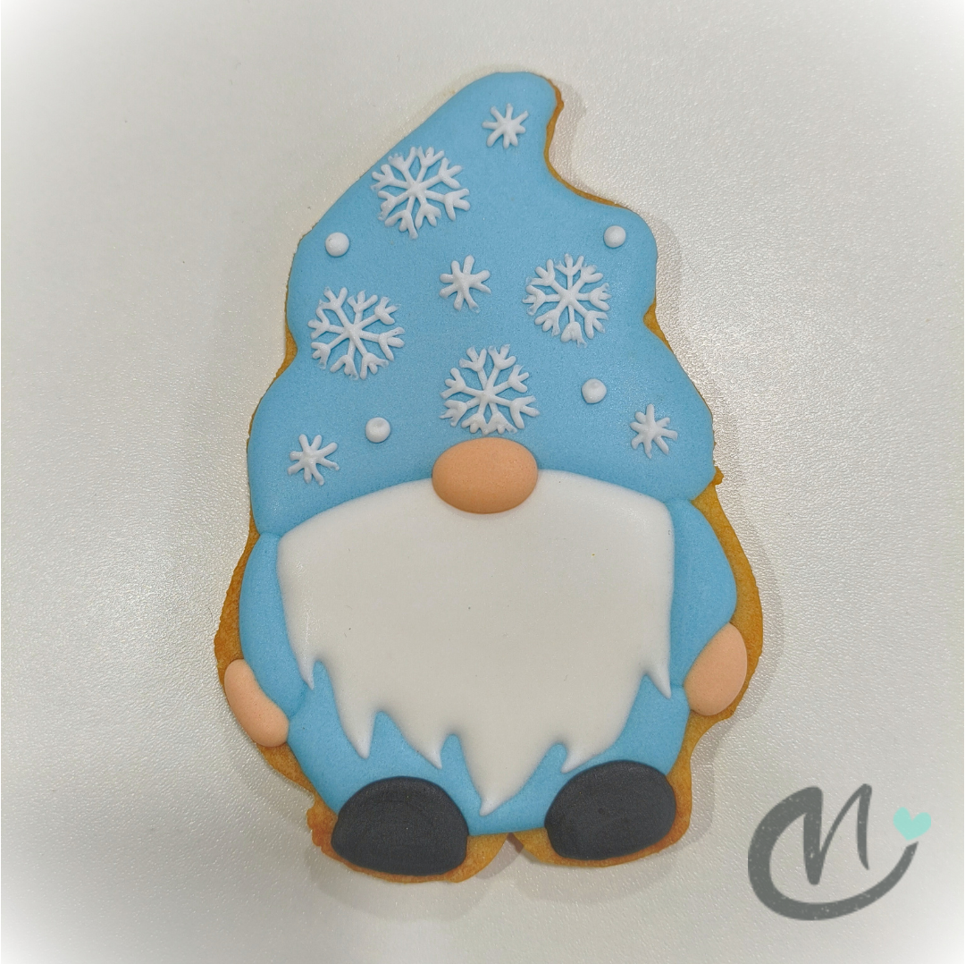 Galleta de mantequilla, artesana, elaborada una a una y decorada con glasa real, con forma de Nomo. La galleta es ideal para endulzar o regalar en una fiesta de Navidad. 🎄 ❄️