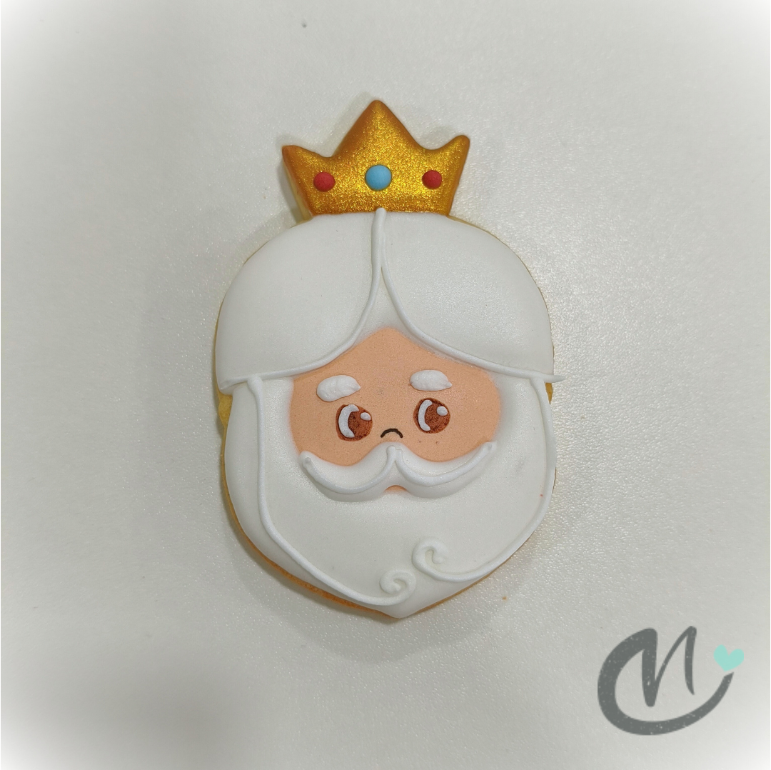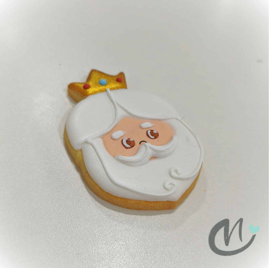 Galleta de mantequilla, artesana, elaborada una a una y decorada con glasa real, con forma de Rey Mago. La galleta es ideal para endulzar o regalar en una fiesta de Navidad. 🎄 ❄️