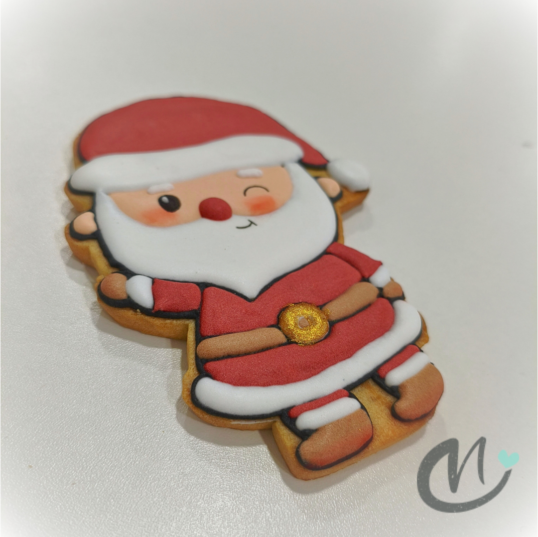 Galleta de mantequilla, artesana y decorada con glasa real, con la forma de la cara de Papa Noël. Ideal para endulzar estos días de Navidad, tan especiales y llenos de ilusión.